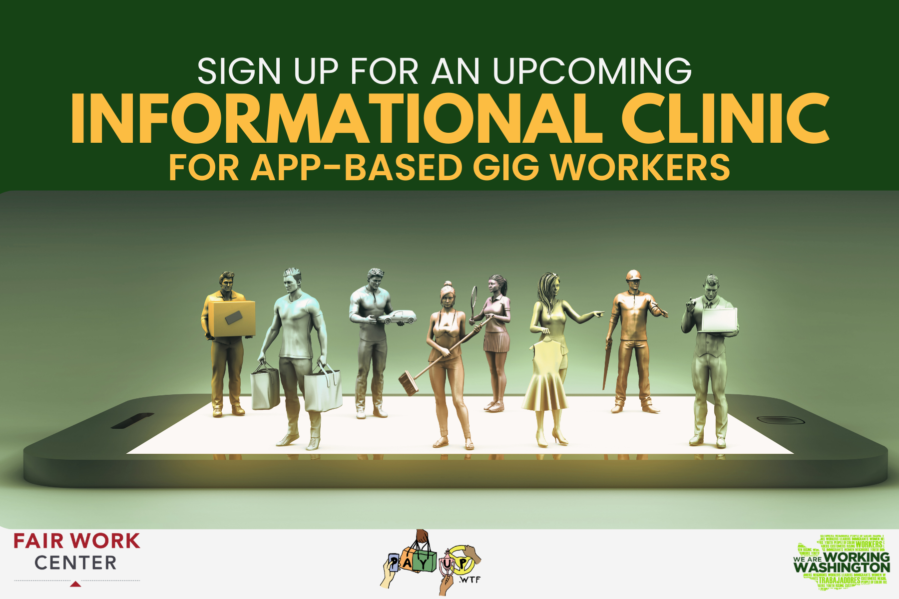 The key to making sure our strong rights get enforced? Education. That’s why we host regular informational clinics for gig workers in Seattle to learn about our rights on the job and what we can do when app corporations try to skirt the law. This is a great opportunity to get answers to questions about our work and connect with legal support. Sign up for one of our upcoming clinics (information below).